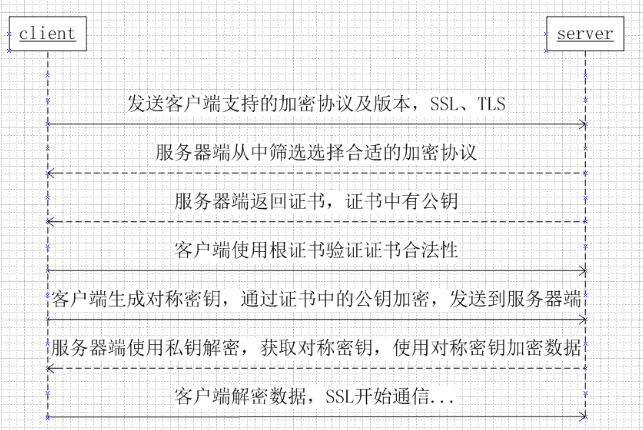 客戶端接收后會(huì)驗(yàn)證證書的安全性,如果通過則會(huì)隨機(jī)生成一個(gè)隨機(jī)數(shù),用公鑰對(duì)其加密,發(fā)送到服務(wù)端
